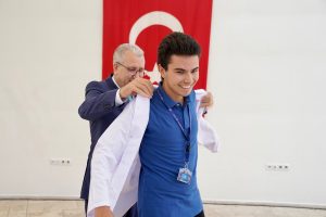 Tıp Fakültesi Dekanı Prof. Dr. Devrim Bozkurt, “Ege Üniversitesinin ilk kurulan üç fakültesinden birisi olan Tıp Fakültesi 70 yıllık deneyimiyle Türkiye’ye ve dünyaya alanında saygın hekimler kazandırmayı sürdürüyor. Her yıl yüzde 1’lik dilimden seçkin öğrencilerin tercihi olan fakültemiz, Tıpta Uzmanlık Sınavı (TUS) başarı listelerinde de ilk sıralarda yer alıyor. Ülkemizin en kapasiteli ve en donanımlı hastanesi ile entegre olarak eğitim faaliyetlerini sürdüren Tıp Fakültemiz, Ege Üniversitesinin kalite politikası doğrultusunda Ulusal Tıp Eğitimi Akreditasyon Kurumu (UTEAK) tarafından eğitimde akredite edilerek kalitesi tescillenmiş bir kurum olarak öne çıkyor. Tıp eğitimi alan öğrencilerin önemli uygulama alanı olan EÜTF Hastanesi ise Sağlık Bakanlığı Verimlilik ve Kalite Daire Başkanlığı tarafından A Plus Hastane olarak tescil edilmiş bir kurum niteliği taşıyor. Fakültemizin ayrıca 25 Anabilim Dalının Tıpta Uzmanlık Eğitimi Akreditasyonu bulunuyor” diye konuştu.