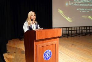 Mühendisliğin sadece teknik bilgi değil, insan yaşamını kolaylaştıran çözümler üretme sanatı olduğunu vurgulayan Prof. Dr. Şengün, mezun öğrencilere seslenerek “Ege Üniversitesi mezunu olmanın ayrıcalığını ve sorumluluğunu meslek hayatınız boyunca hissedeceksiniz. Yolunuz, bahtınız açık olsun” dedi. Ailelere teşekkür eden Prof. Dr. Şengün, “Evlatlarınızı bize emanet ettiniz, bugün mezuniyetlerini gururla kutluyorsunuz. Bu yolculukta sabrınız ve desteğiniz için teşekkür ederiz” diye konuştu.