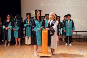 Tören, dereceye giren öğrencilere teşekkür belgeleri ve plaketlerinin takdim edilmesinin ardından, mezunların geleneksel kep atma coşkusuyla sona erdi.