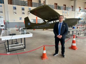 Havacılık sektörüne yön verecek bilimsel çalışmalar yaptıklarını ifade eden Prof. Dr. Yeşilay, “Bazı faaliyetler ile ülkemizde havacılık sektörünün gelişmesine katkı sağlayacak eğitimler vermekteyiz. Her iki programımızda da eğitmen kadromuz tamamen havacılık alanında eğitim almış kişilerden oluşmaktadır. Meslek Yüksekokulu olarak hedefimiz havacılık sektörünün ihtiyacı olan nitelikli elemanlar yetiştirerek, bölgesinde lider havacılık eğitim-öğretim merkezi olmaktır. Bu kapsamda Üniversite-Sanayi işbirliğini de önemsiyor ve bölgemizde faaliyet gösteren ‘PFW Havacılık ve Pagetel’ firmaları ile öğrencilerimizin yarı zamanlı çalışma süreçleri ile ilgili iş birliği yapıyoruz. Uçak Teknolojisi Programı 2’nci sınıf öğrencilerimizden istekli olanlar ve firmalar tarafından işe alım süreçlerini başarı ile tamamlayanlar haftanın 1 günü, işletmelerle yaptıkları sözleşme kriterlerine uygun olarak, sigortaları firmalardan karşılanarak ve maaşlı yarı zamanlı istihdam edilmektedir” dedi.