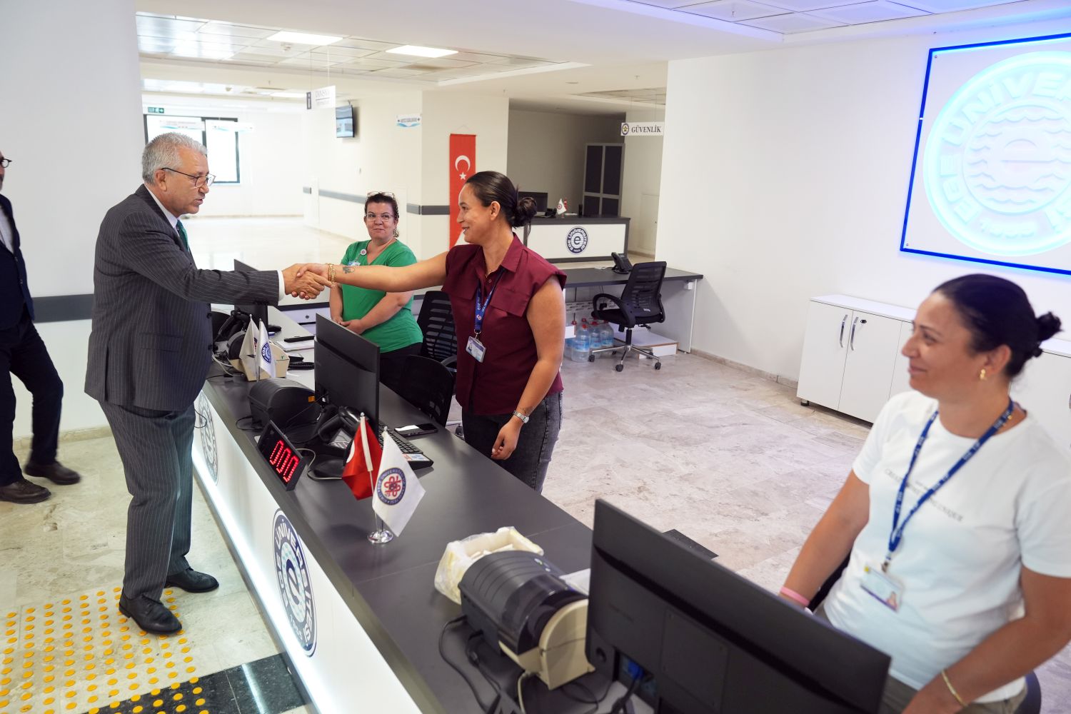 Rektör Prof. Dr. Necdet Budak, “Tam akredite, sağlık temalı, araştırma üniversitemiz bünyesinde kısa süre önce Merkezi Ameliyathanemizin açılışını yaparak hizmet sunumuna başlamıştık. Üniversitemizin topluma katkı misyonu doğrultusunda özel ehemmiyet gösterdiğimiz konuların başında sağlık hizmetleri geliyor. Başta ilimiz ve bölgemiz olmak üzere vatandaşlarımıza daha kaliteli sağlık hizmeti sunmak hedefi ile Tıp Fakültesi Hastanemizin altyapısını ve donanımını günün koşulları doğrultusunda sürekli güncelledik ve son teknolojik cihazlarla donattık. Bu kapsamda; bünyesinde ameliyathaneler, doğum odaları, endoskopi salonları bulunan modern ameliyathanemizi hizmete açarak cerrahi işlemler yapılmaya başladı. Bugün nitelikli sağlık hizmeti vizyonumuz doğrultusunda hayata geçirdiğimiz, ileri teknolojiyle donatılmış ve bölgemizin sağlık kapasitesine yeni bir boyut kazandıran Merkezi Ameliyathanemizi ziyaret ettik. Bölgemizin en kapsamlı cerrahi merkezlerinden ve güçlü bir sağlık üssü olarak konumlanan yeni merkezimizle; ileri teknolojiyle donatılmış altyapısı, güçlü araştırma ekosistemi ve uygulamalı klinik görüntüleme sistemleriyle kesintisiz ve sürdürülebilir sağlık hizmetleri sunuyoruz. Yenidoğandan yetişkinlere kadar her yaş grubunun ihtiyaçlarına yönelik donanımla hizmet veren Merkezi Ameliyathanemizde, Çocuk Cerrahisi Anabilim Dalımız ilk cerrahi vakalarını başarıyla gerçekleştirdi. Emeği geçen sağlık ekiplerimize teşekkür ediyorum. Ege Üniversitesi olarak yalnızca akademik ve bilimsel üretimimizle değil; sağlık temalı araştırma üniversitesi kimliğimizle toplumun her kesimine sunduğumuz yüksek standartlı sağlık hizmetleriyle de öncü konumumuzu kararlılıkla güçlendirmeye devam ediyoruz” dedi.
