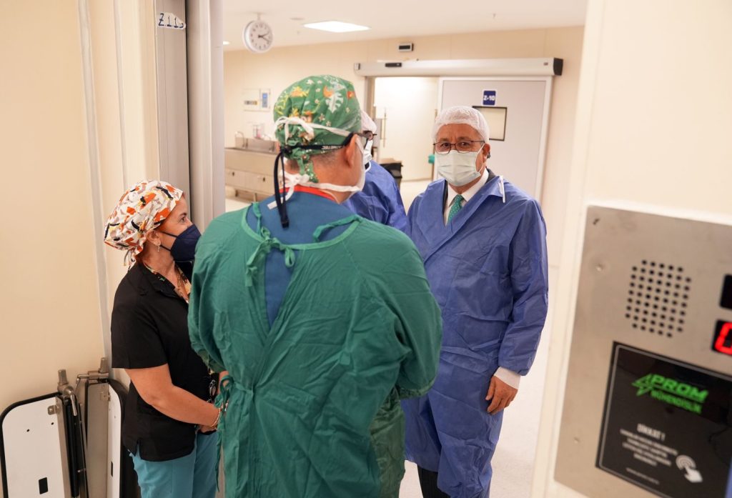 İçerisinde 59 ameliyathane, 9 doğum odası, 8 endoskopi salonu ve 205 erişkin ve çocuk, 8 yenidoğan yoğun bakım odaları bulunan, ileri tıp teknolojileri ile donatılı dev sağlık kompleksi niteliğindeki Merkezi Ameliyathanede cerrahi operasyonlar yapılmaya başlandı. Ege Üniversitesi Rektörü Prof. Dr. Necdet Budak, Rektör Yardımcısı ve Tıp Fakültesi Dekanı Prof. Dr. Devrim Bozkurt ile birlikte Merkezi Ameliyathaneyi ziyaret etti. Rektör Prof. Dr. Necdet Budak, operasyonu gerçekleştiren Tıp Fakültesi Çocuk Cerrahisi Anabilim Dalı öğretim üyesi Prof. Dr. Orkan Ergün’den bilgi aldı. Prof. Dr. Budak, Türkiye’nin tıp eğitimi ve klinik araştırmalar başta olmak üzere sağlık hizmeti sunumunda uluslararası referans merkezi olan Tıp Fakültesi Hastanesinde açılışı yapılan Merkezi Ameliyathanede cerrahi operasyonların yapılmaya başladığını söyledi.