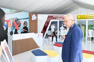 TEKNOFEST Mavi Vatan kapsamında yarışan Ege Üniversitesi Mühendislik Fakültesi öğrencilerinden oluşan Su Altı Roketi Takımı Marlin Aquatech’i ziyaret eden Rektör Prof. Dr. Necdet Budak, öğrencilerin heyecanına ortak oldu. Bu tür projelerin Ege Üniversitesinin Ar-Ge ve teknoloji vizyonunu yansıttığını ifade eden Rektör Prof. Dr. Necdet Budak, “Dünyanın en büyük havacılık, uzay ve teknoloji festivali olan TEKNOFEST’te, bu yıl ilk kez gerçekleştirilen Mavi Vatan tematik alanında yer alarak üniversitemizi temsil eden öğrencilerimizin heyecanına ortak olduk. Ülkemizin bilim, teknoloji ve inovasyon yolculuğunda öncü rol üstlenen TEKNOFEST gençliği arasında yer alan öğrencilerimizin, ürettikleri yenilikçi projelerle geleceğe yön vermesinden gurur duyuyoruz. Tam akredite, öğrenci odaklı, sağlık temalı araştırma üniversitesi kimliğimizle, Milli Teknoloji Hamlesine katkı sunmaya ve gençlerimizin yanında olmaya devam edeceğiz. Gençlerimizin hayallerini teknolojiyle buluşturan ve millî üretim vizyonumuza öncülük eden T3 Vakfı Mütevelli Heyeti Başkanı Sayın Selçuk Bayraktar’a şükranlarımı sunuyorum” dedi. Rektör Prof. Dr. Necdet Budak, öğrenci projelerinin sergilediği stantları da ziyaret ederek çalışmaları inceledi.