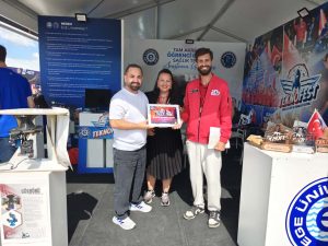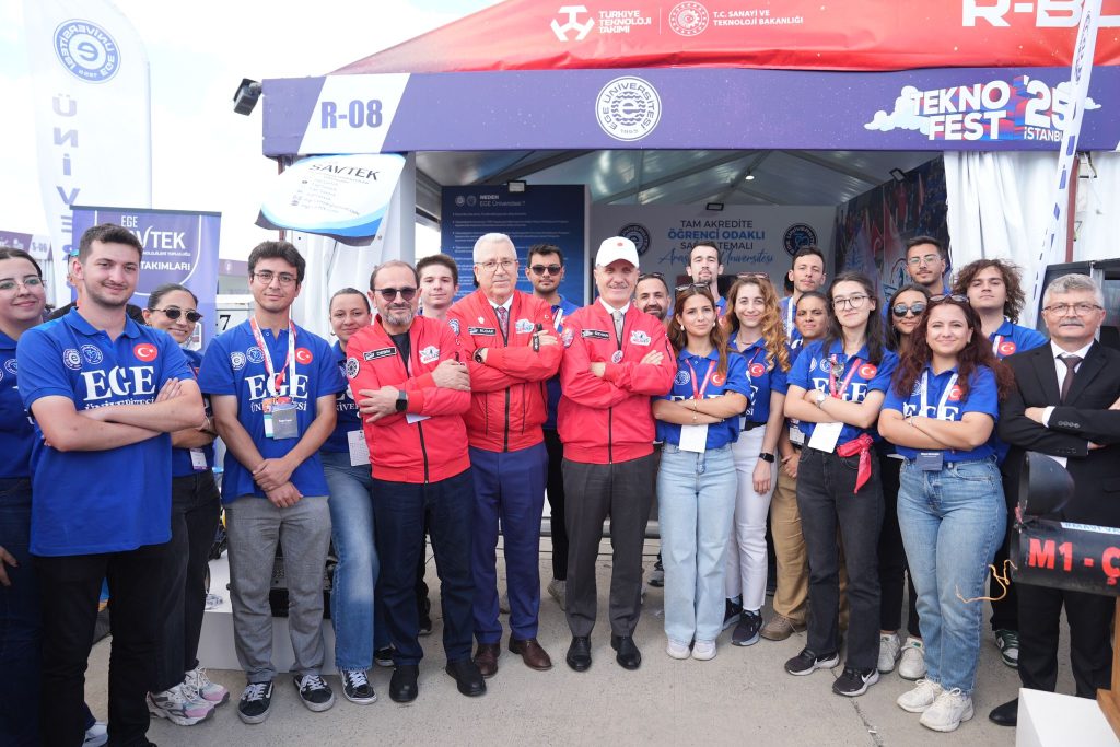 Ege Üniversitesi standının festival boyunca yoğun ilgi gördüğünü ifade eden Prof. Dr. Budak, “TEKNOFEST 2025 İstanbul’da, 7’den 70’e vatandaşlarımızın standımıza gösterdiği yoğun ilgiyle öğrencilerimizin bilim ve teknoloji ekosistemimizde ürettiği yenilikçi projeleri gururla sergiledik. Beş gün boyunca yerli ve millî teknolojiye yön veren projelerimizle her yıl olduğu gibi bu yıl da TEKNOFEST İstanbul’da ülkemizin teknoloji vizyonuna katkı sunduk. YÖK Başkanımız Prof. Dr. Erol Özvar da stadımızı ziyaret ederek öğrencilerimizin projelerini inceledi. Gençlerimizin hayallerini gerçeğe dönüştürmeleri için her zaman yanlarında olarak onlara her türlü desteği sağlayan, başta Cumhurbaşkanımız Sayın Recep Tayyip Erdoğan olmak üzere, Sanayi ve Teknoloji Bakanımız Mehmet Fatih Kacır’a ve sekiz yıldır bu değerli organizasyonu gençlerimizle buluşturan Türkiye Teknoloji Takımı Vakfı Mütevelli Heyeti Başkanı ve TEKNOFEST Yönetim Kurulu Başkanı Selçuk Bayraktar’a şükranlarımı sunuyorum. Ülkemizin Millî Teknoloji Hamlesi vizyonu doğrultusunda, Ege Üniversitesi olarak Türkiye’nin bilim ve teknoloji alanındaki gelişimine katkı sunmaktan büyük gurur duyuyoruz. Öğrencilerimizin araştırma ekosistemine aktif katılımını teşvik ederek, teknoloji yarışmalarında ortaya koydukları yenilikçi projeleri topluma fayda sağlayacak uygulamalara dönüştürmelerine yönelik desteğimizi kararlılıkla sürdürüyoruz” diye konuştu.