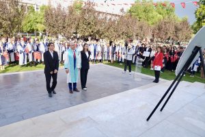 Saygı duruşu ve İstiklal Marşı’nın okunmasıyla başlayan tören, Ege Üniversitesi Rektörü Prof. Dr. Necdet Budak’ın, 100. Yıl Anıtı’na çelenk sunması ile devam etti. Çelenk merasiminin ardından, Rektör Prof. Dr. Necdet Budak bir konuşma gerçekleştirdi.