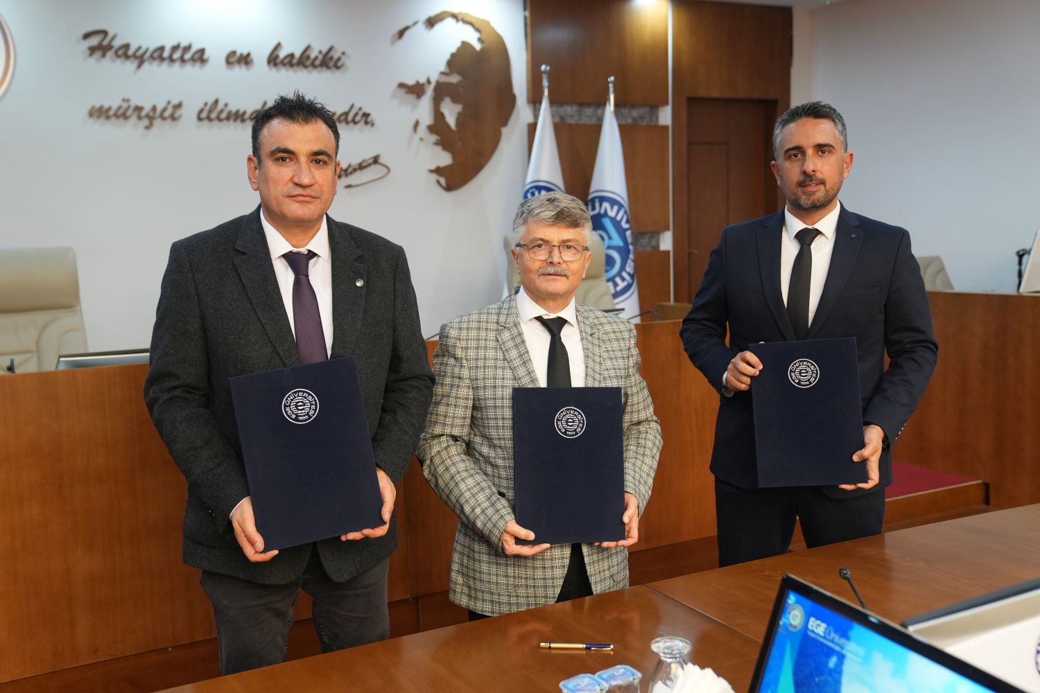 Ege Üniversitesinde (EÜ), üniversite-sanayi iş birliğini güçlendirecek, nitelikli eleman gücünün yetiştirilmesine katkı sağlayacak yeni bir protokol daha hayata geçirildi. Ege Üniversitesi Ege Meslek Yüksekokulu (MYO) ile Aventek Otomotiv Elektronik İlt. Sis. İnş. San. Tic. Ltd. Şti arasında “Mesleki Eğitim İş Birliği Protokolü” imzalandı. Protokol imza törenine EÜ Rektör Yardımcısı Prof. Dr. Mehmet Ersan, Ege MYO Müdürü Prof. Dr. Emre Ercan, Aventek Otomotiv yetkilileri ve MYO akademisyenleri katıldı.