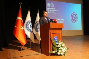 Akademik Açılış Töreninde Ege Üniversitesi ailesine hitap eden Adalet Bakanı Yılmaz Tunç, “1955 yılında kurulan Ege Üniversitesi, Türkiye’nin dördüncü üniversitesidir. O günden bu yana akademik başarılarıyla Türkiye’nin yükseköğrenimine çok önemli katkılarda bulunmuş; öğrenciler, akademisyenler yetiştirmiştir. Bugün Ege Üniversitesinin geldiği noktada, her alanda birçok başarıyı elde ettiğini görüyoruz. Ege Üniversitemizle gurur duyuyoruz. Bu üniversitenin kuruluşundan itibaren bugünlere kadar gerek akademisyen olarak, gerek idareci olarak, gerekse burada eğitim gören ve bu üniversiteye katkı sağlayan, destek olan herkese huzurlarınızda çok çok teşekkür ediyoruz. Ege Üniversitemiz, ülkemizin eğitim kalitesini artırmaya yönelik çok önemli çalışmalara ve başarılara imza attı, bundan sonra da imza atacaktır. Değerli Hocamız Prof. Dr. Necdet Budak’ın 8 yıldan bu yana üniversiteye katkılarını görmemek mümkün değil. Ege Üniversitesini getirdiği nokta itibarı ile kendisiyle gurur duyuyoruz. Ege Üniversitemiz, 50 binin üzerinde öğrencisiyle Türkiye’nin en fazla öğrenciye sahip üniversitelerinden birisi. Bünyesindeki akademik birimleriyle sadece İzmir’in değil, Ege’nin ve Türkiye’nin en önemli eğitim yuvasıdır. Burası; ülkemiz için bir lokomotif görevi yapan bir eğitim yuvası” dedi.