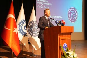 Konuşmasının başında Filistin’de yaşanan insanlık dramına değinen Rektör Prof. Dr. Necdet Budak, “Gazze’de 7 Ekim 2023 tarihinden bu yana, Filistinli kardeşlerimize yönelik işgalci İsrail’in sürdürdüğü katliamı ve soykırımı Ege Üniversitesi olarak şiddetle kınıyoruz. Hayatını kaybeden tüm Filistinli kardeşlerimize Allah’tan rahmet, yaralılara acil şifalar diliyorum” dedi.