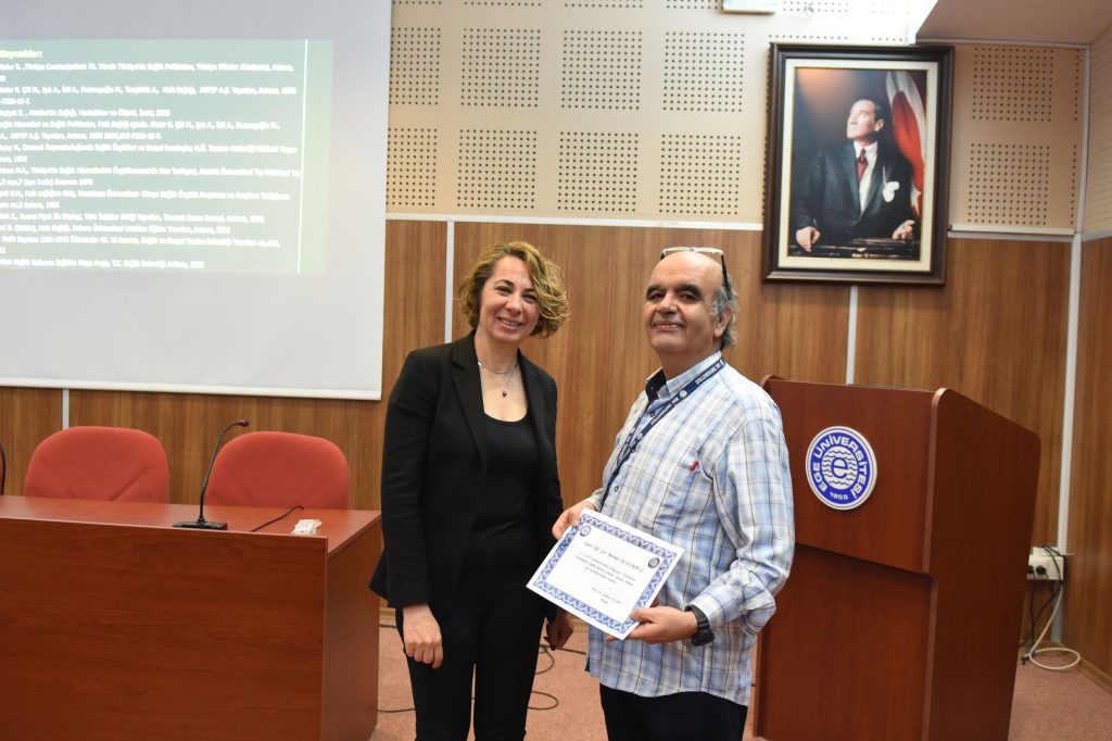 Enstitü Müdürü Prof. Dr. Sabriye Yuşan, Öğr. Gör. Mehmet Ali Durmuş’a Teşekkür Belgesi takdim etmesiyle etkinlik sona erdi.