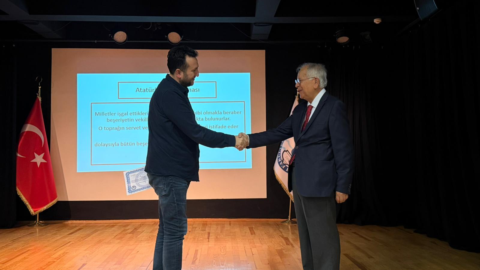 Konferansın sonunda Doç. Dr. İskender Daşdemir, Prof. Dr. Mustafa Kaymakçı’ya “Teşekkür Belgesi” takdim etti.