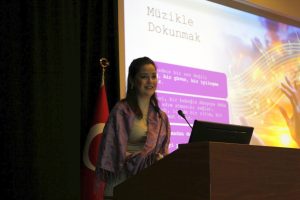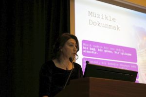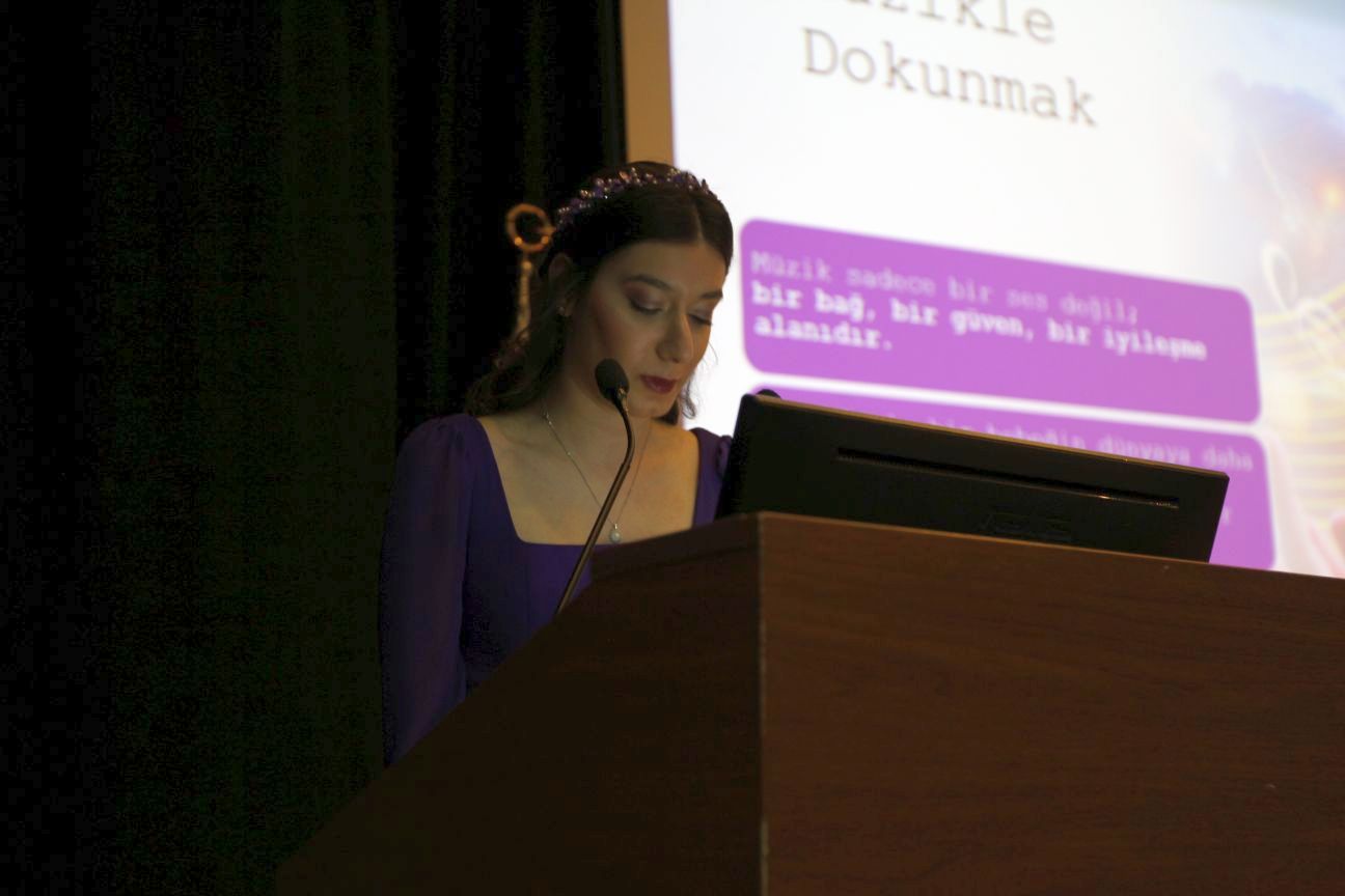“Prematüre Bebekler ve Müzik” başlıklı sunumunda, müziğin prematüre bebekler üzerindeki iyileştirici etkilerinden bahseden Prof. Dr. Özge Altun, “Prematüre bebeklerin doğdukları andan itibaren duyusal olarak çok kırılgan olduklarını ve anne karnındaki ritmik, güvenli ortamdan uzaklaştıklarını biliyoruz. Ancak uygun müzikle bu ritmi onlara geri verebildiğimizi, böylece beyin bağlantılarının güçlendiğini, kalp atışı ve solunumun düzene girdiğini, hatta ağrı ve streslerinin azaldığını görüyoruz. Müzik, prematüre bebeklerin beslenmesine, uyku düzenine, anne-baba ile bağlanmasına ve uzun vadede dikkat, hafıza, dil ve sosyal becerilerine kalıcı katkılar sağlıyor. En etkili olan ise annenin kendi sesiyle söylediği ninni; kısa, yumuşak ve ritmik melodiler bebeğin gelişimi için en doğal destek. Hastaneden sonra da her gün birkaç dakikalık müzik veya ninni, bebeğin duygusal ve bilişsel gelişimine güçlü bir yatırım oluyor. Müzik yalnızca bebeklere değil, anne babaya ve yoğun bakım atmosferine de iyi geliyor; bir güven ve iyileşme alanı yaratıyor. Bu nedenle müziğin prematüre bebekler için gerçek bir güç olduğunu düşünüyor ve bugün burada sizlere de müzikle dokunmak istiyoruz” dedi.