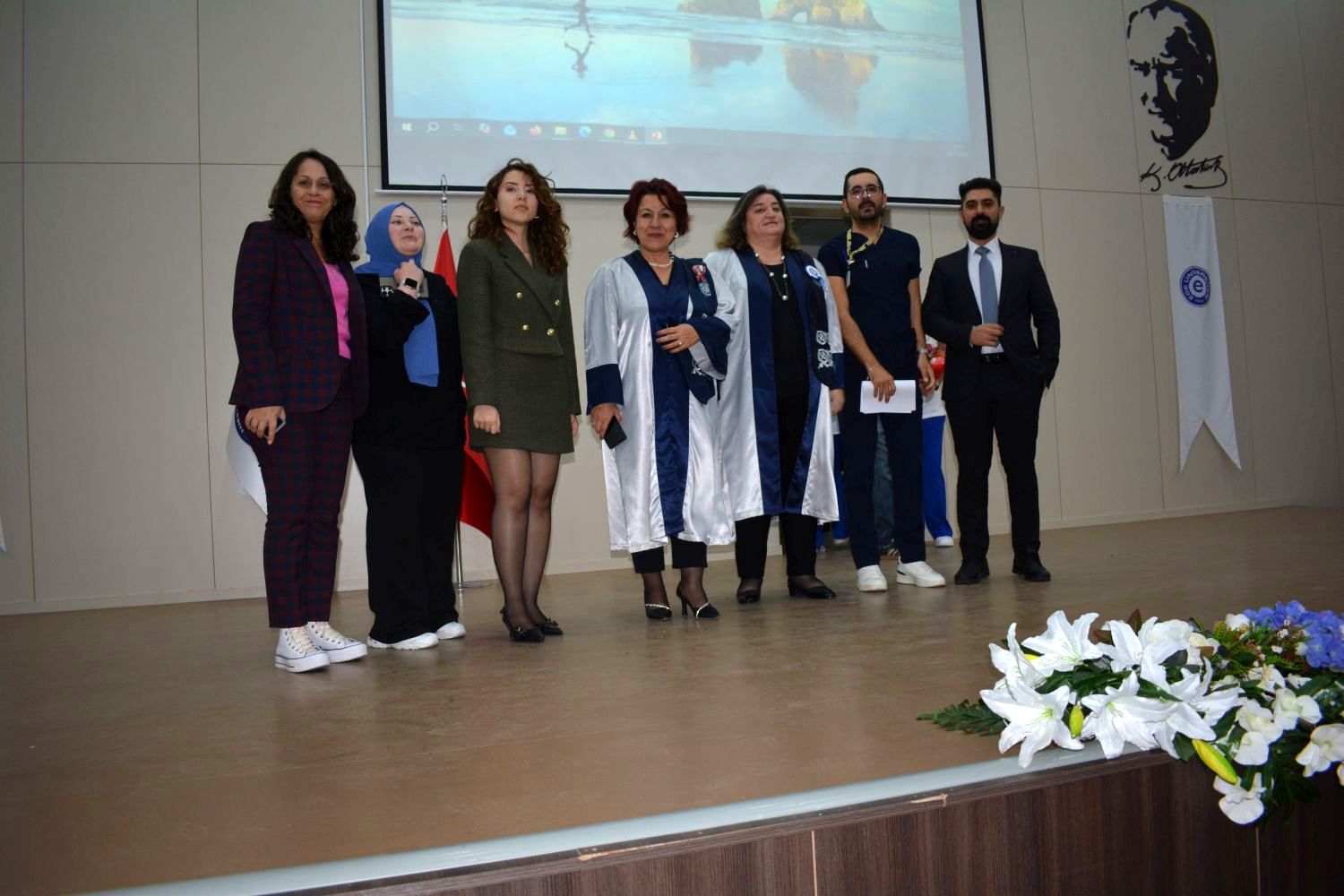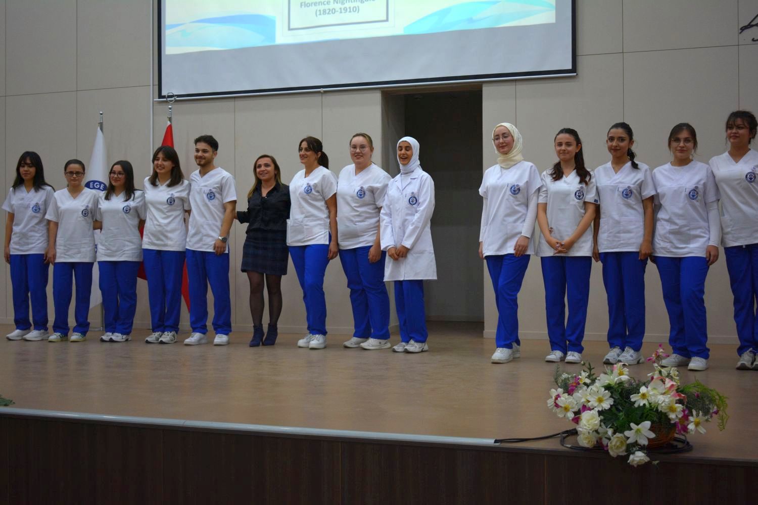 Ege Üniversitesi Hemşirelik Fakültesi 2. sınıf sorumlusu Ebrar Fesçekoğlu ise “Bugün burada, hemşirelik mesleğimizin en anlamlı sembollerinden biri olan üniformalarımızı giymek için bir araya geldik. Bu an, hepimiz için yalnızca bir tören değil; mesleki kimliğimizin oluşmaya başladığı, sorumluluklarımızı artık daha derinden hissettiğimiz özel bir dönüm noktasıdır. Unutmayalım, üniformamız sadece bir kıyafet değildir. İnsan hayatına dokunma ayrıcalığını, mesleki duruşu, vicdanı ve sorumluluğu temsil eden güçlü bir semboldür” diye konuştu.
