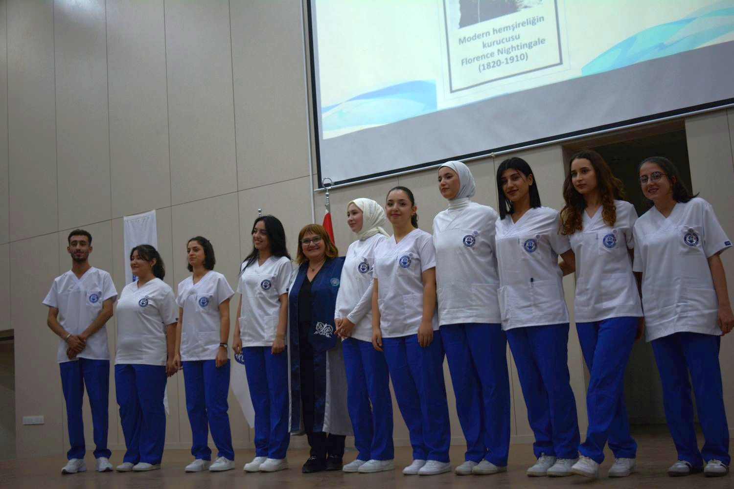 Konuşmaların ardından Hemşirelik Fakültesi tanıtım filmi ve geçmişten günümüze hemşirelik formalarını içeren dia gösterimi sunuldu ve meşale devir teslimi yapıldı. Öğrencilerin, üniformaları ile geçişlerinin gerçekleştirilmesi ve akademisyenler tarafından öğrencilere Hemşirelik Fakültesi logolu kartlıklarının takılmasıyla tören son buldu.