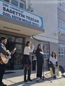 Ege Üniversitesi Müzik, Resim, Sanat ve Tasarım toplulukları ile MEV Koleji Bornova Şubesi öğrencileriyle birlikte 3 Aralık Dünya Engelliler Günü kapsamında Sadettin Tezcan Özel Eğitim Meslek Okulu’na anlamlı bir ziyaret gerçekleştirdi. Toplumsal farkındalığı artırmak, engelli bireylerin yaşamlarına dikkat çekmek ve kapsayıcı bir toplum bilinci oluşturmak amacıyla düzenlenen etkinlik, katılımcılardan büyük ilgi gördü. Etkinlik boyunca, Ege Üniversitesi öğrenci topluluklarının liderliğinde gerçekleştirilen çeşitli müzik performansları, resim atölyeleri ve sanatsal çalışmalar, katılımcı öğrencilerin keyifli anlar yaşamasını sağladı. Sadettin Tezcan Özel Eğitim Meslek Okulu ve MEV Koleji Bornova Şubesi öğrencileri, Egeli öğrencilerin rehberliğinde yaratıcılıklarını sergileme fırsatı bulurken, bu etkileşimli ortamda yeni arkadaşlıklar kurmanın ve sanatın evrensel dilinde buluşmanın mutluluğunu yaşadı. Müzik, Resim, Sanat ve Tasarım toplulukları, bu özel günün anlamına değer katan etkinliğin hayata geçirilmesindeki desteklerini esirgemeyen Ege Üniversitesi Rektörü Prof. Dr. Necdet Budak’a teşekkür ettiler.