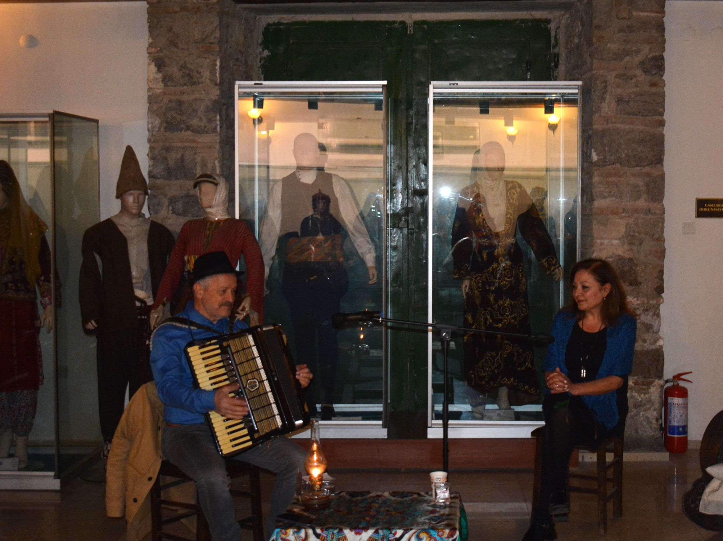 Asıl mesleğinin Peyzaj Mimarlığı olduğunu söyleyen Özlem Küçükahmetler “Asıl mesleğim peyzaj mimarlığı, eşim ise emekli bir bankacı. Emekliliğimizin ardından edebiyata olan tutkum beni bir masal anlatıcılığı atölyesine yönlendirdi. Okumalarımı bu alanda derinleştirerek ben de masal anlatmaya başladım. Eşim de yıllardır akordeon çalıyor; bu işi tamamen gönüllü olarak yürütüyoruz. Bugün sizlere iki masal anlatacağım. İlki, oldukça eğlenceli bir Anadolu masalı olan ‘Çifte Kamburlar’. Diğeri ise Jamaikalı siyahi bir anlatıcıdan İngilizce olarak dinlediğim ancak tam bir Anadolu figürü taşıyan, biraz daha hüzünlü olan ‘Balıkçının Hikâyesi’dir. Bizleri burada buluşturan Etnografya Müzesine ve bir araya gelmemize vesile olanlara teşekkürlerimi sunuyorum” dedi.