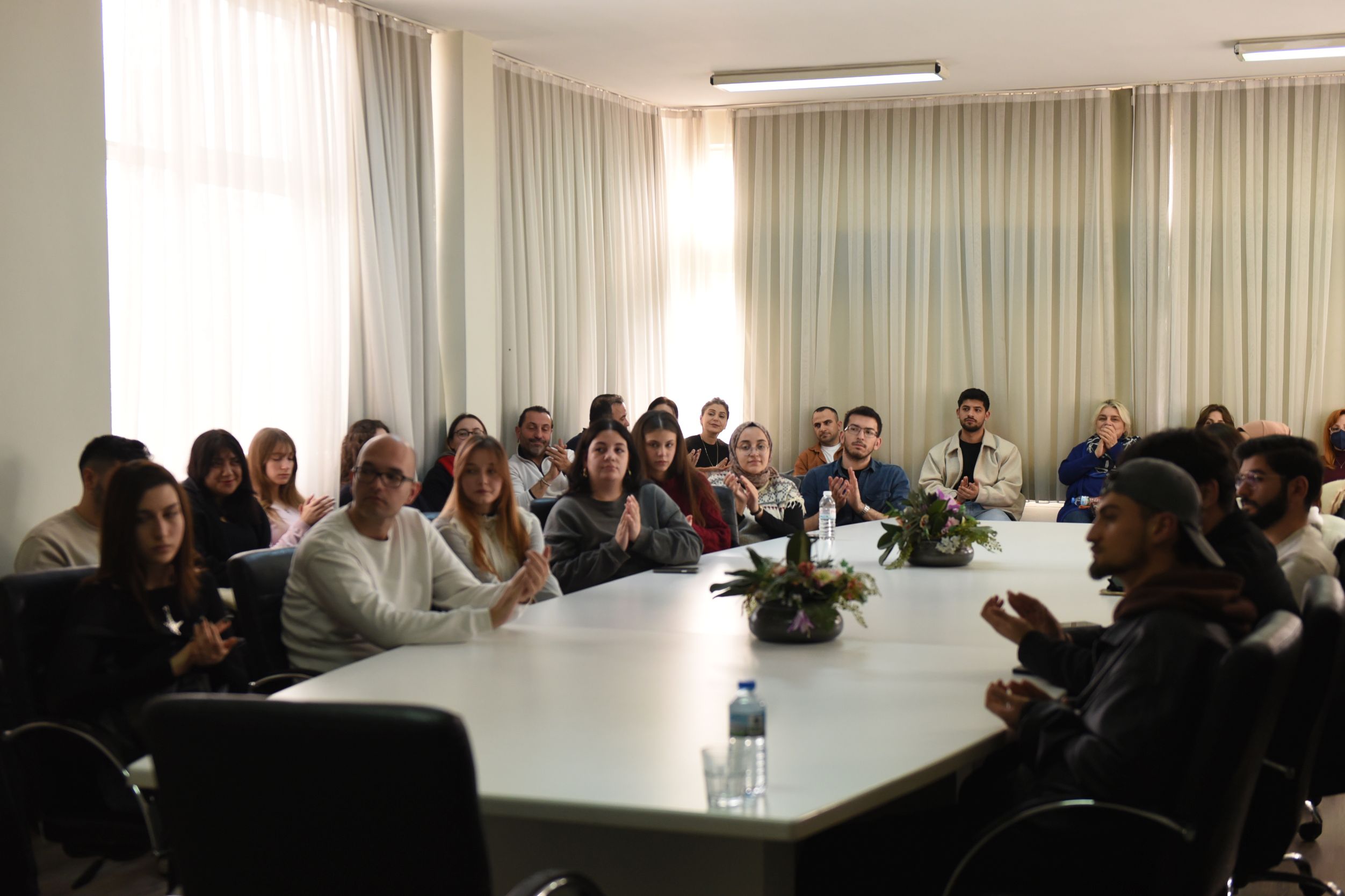Etkinliğin moderatörlüğünü yapan EÜ İletişim Fakültesi Dekanı Prof. Dr. Bilgehan Gültekin, bu tür buluşmaların geleneksel hale getirileceğini ve öğrencilerin kariyer yolculuklarında etik değerlerin pusula görevi göreceğini vurguladı. Prof. Dr. Gültekin, “Bugünkü toplantımızın konusu çalışma etiği. Çalışma etiği, profesyonel yaşamda hepimiz için en temel unsurlardan biridir. İletişim kanallarının disiplinli kullanımından genel iş ahlakına kadar birçok önemli noktayı TBMM Danışmanı Avukat İzen Yaman’dan dinleyeceğiz. Kendisini aramızda görmek bizleri çok mutlu etti” dedi.