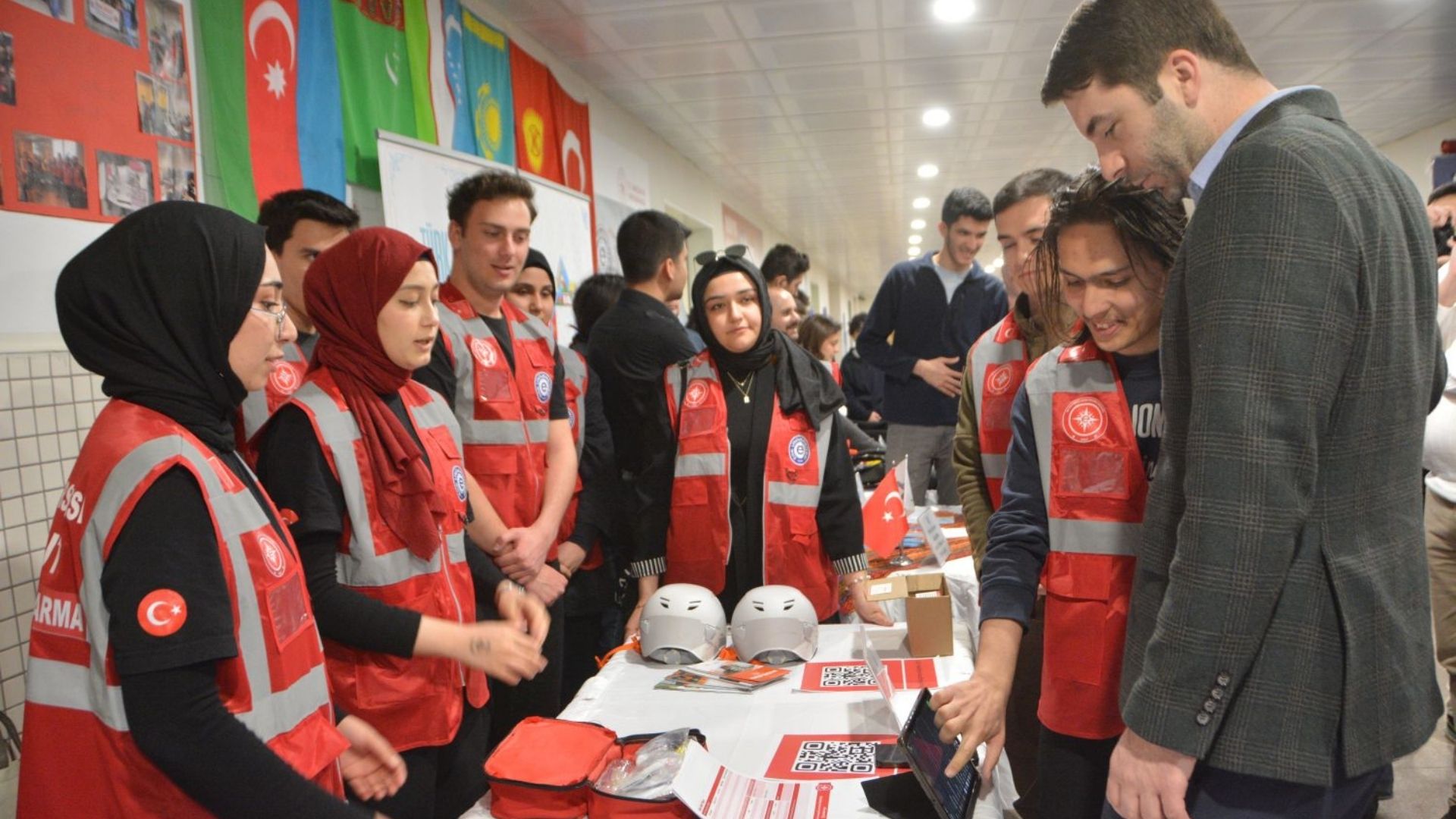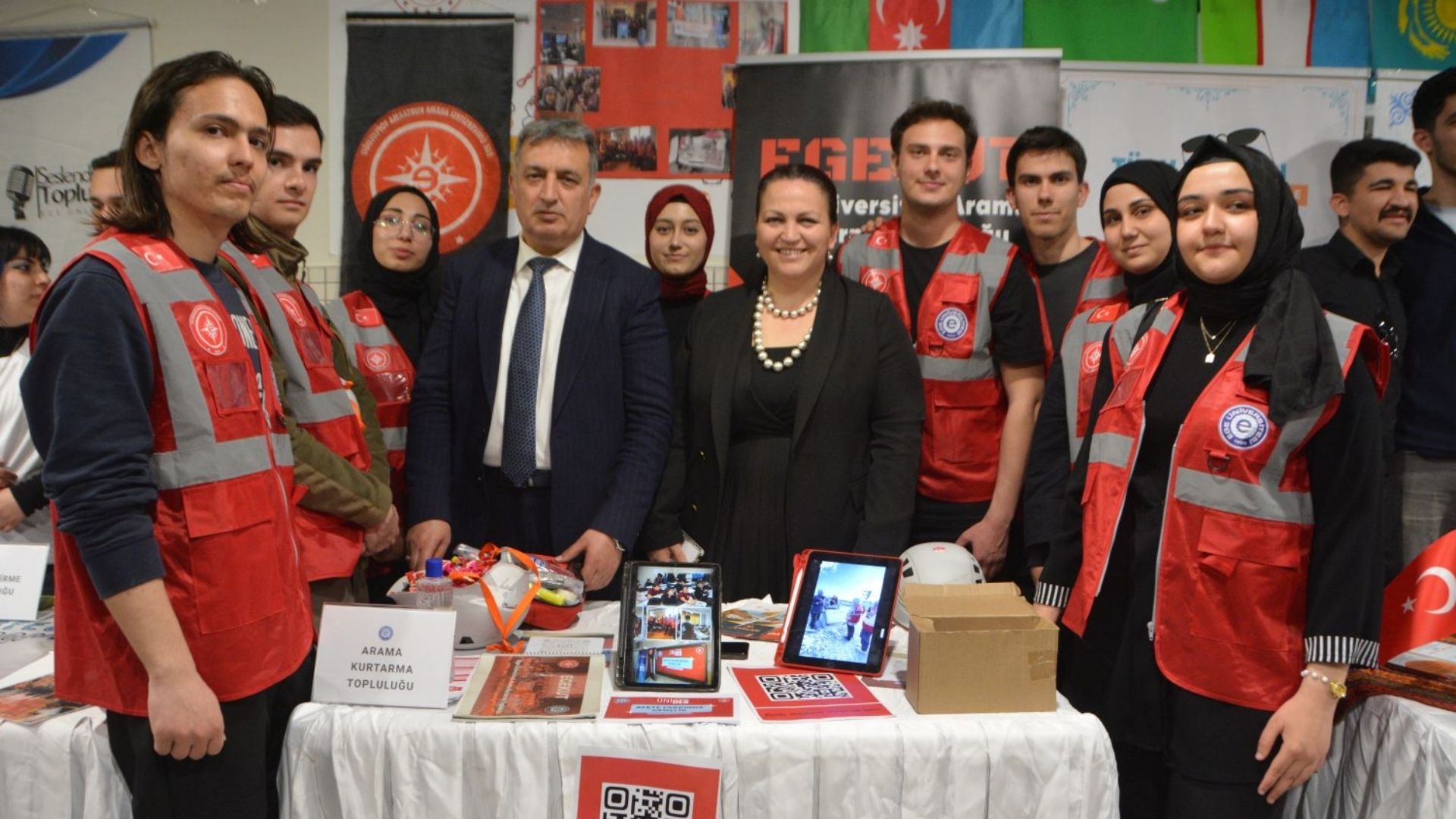Prof. Dr. Musa Alcı ve Dr.  Mehmet Kasapoğlu iftar programı sonunda kurulan stantları gezerek Egeli öğrencilerin projelerini inceledi.