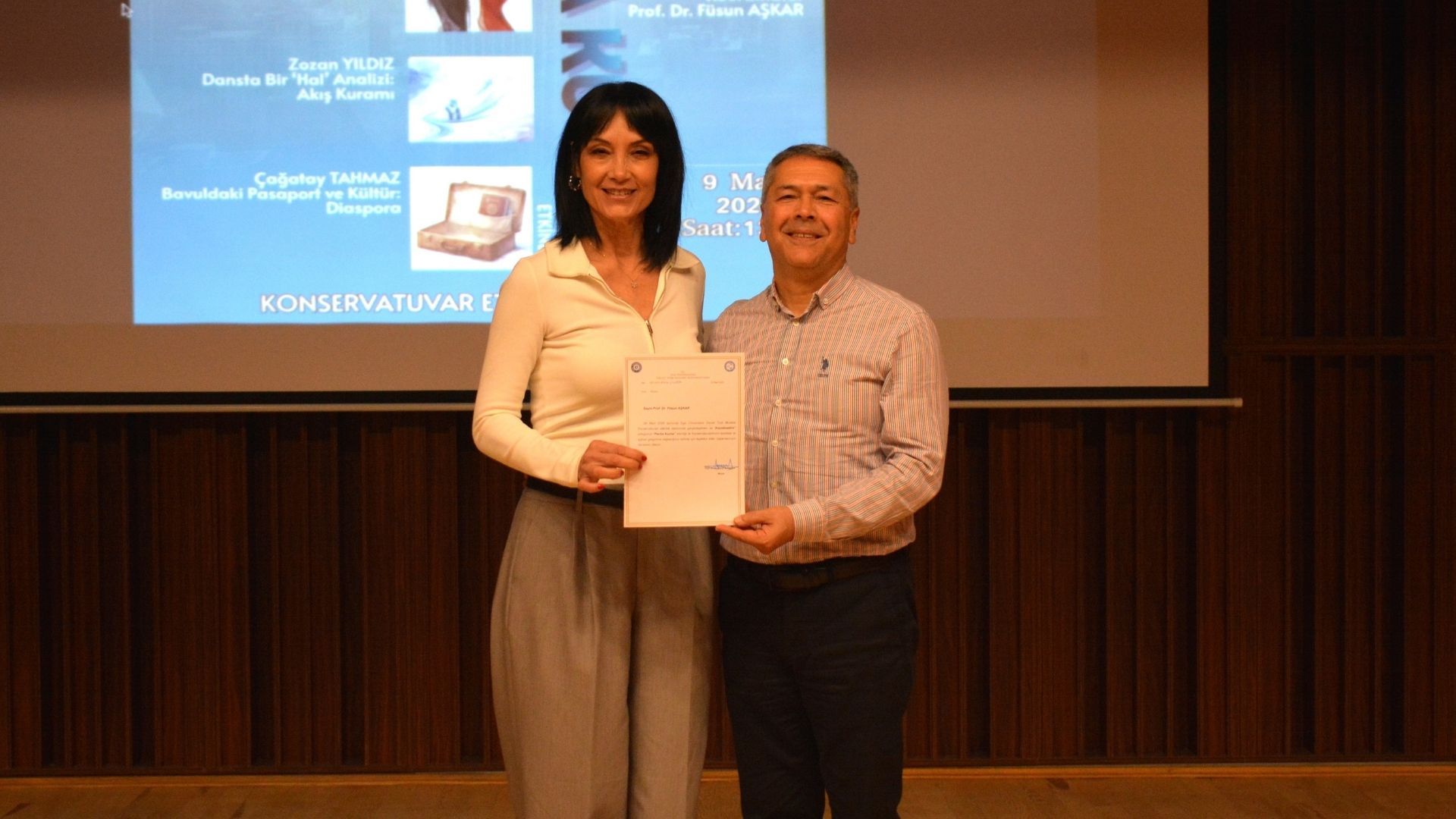Etkinliğin sonunda Prof. Dr. Alaskan, çalıştayda emeği geçen koordinatör Prof. Dr. Füsun Aşkar’a “Teşekkür Belgesi” takdim etti.