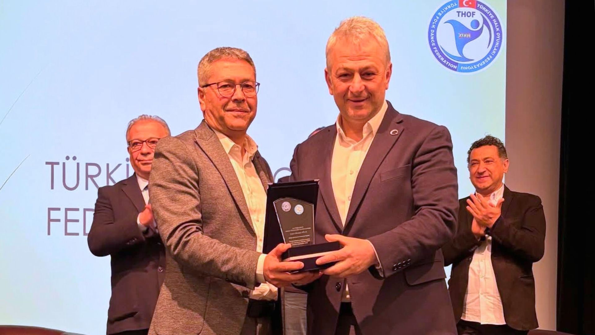Öğrencilerin sorularının yanıtlandığı bölümün ardından Ege Üniversitesi Devlet Türk Musikisi Konservatuvarı Müdürü Prof. Dr. Ali Maruf Alaskan tarafından Türkiye Halk Oyunları Federasyonu Başkanı Hüseyin Güler’e günün anısına teşekkür plaketi takdim edildi.