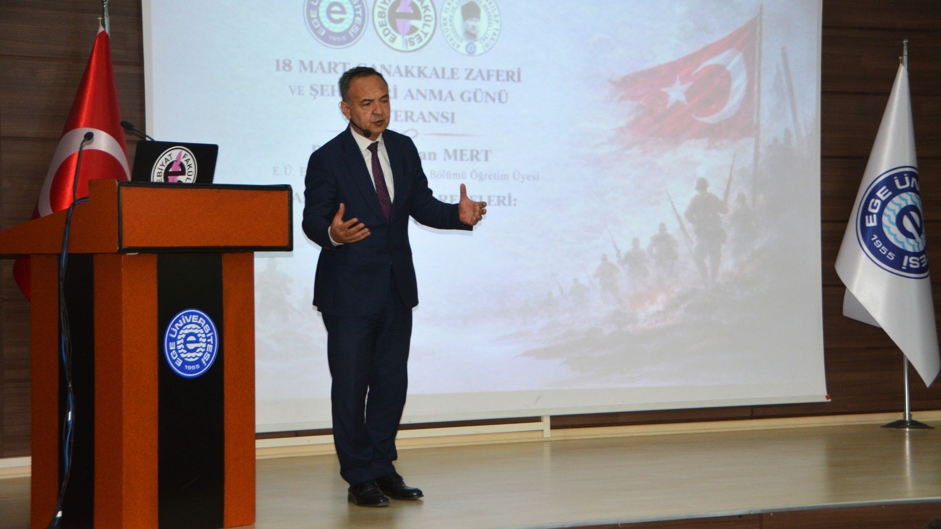 *Ege Üniversitesinde düzenlenen “Çanakkale Muharebeleri: ‘Ertesi Gün’” başlıklı konferansta, Çanakkale Zaferi’nin tarihi önemi ve kahramanların aziz hatıraları duygu dolu anlarla yâd edildi.