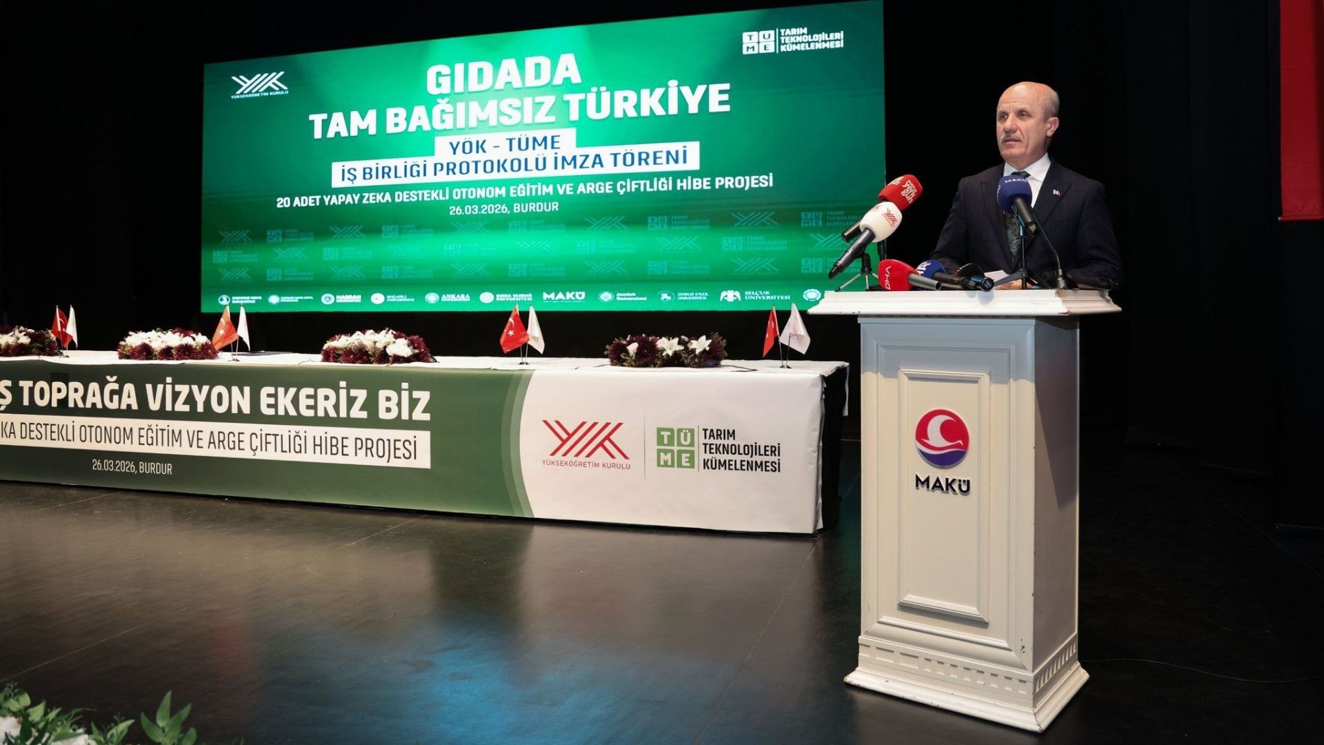 İZMİR(Ege Ajans)- Yükseköğretim Kurulu (YÖK) ile Tarım Teknolojileri Kümelenmesi (TÜME) arasında, yükseköğretim sistemi ile tarım ve hayvancılık sektörünü ortak hedefler doğrultusunda buluşturan bir iş birliği protokolü imzalandı. Burdur Mehmet Akif Ersoy Üniversitesinde, YÖK Başkanı Prof. Dr. Erol Özvar başkanlığında gerçekleştirilen protokol törenine Ege Üniversitesi adına Rektör Prof. Dr. Musa Alcı ve Rektör Yardımcısı, Ziraat Fakültesi öğretim üyesi Prof. Dr. Murat Boyacı katıldı. Ege Üniversitesi, bilimin gücünü sektörle buluşturacak olan iş birliği kapsamındaki pilot üniversitelerden birisi oldu.