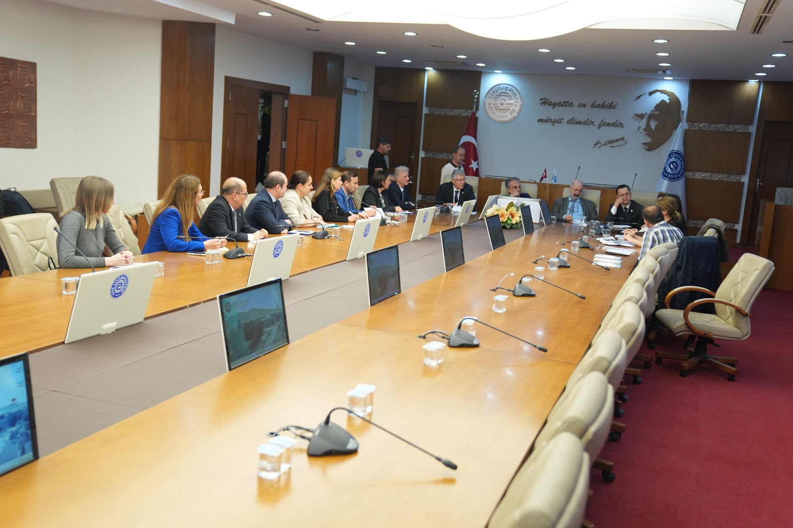 Ege Üniversitesinin (EÜ) tüm birimlerinde başarıyla uyguladığı “TS EN ISO 9001:2015 Kalite Yönetim Sistemi” ve “TS EN ISO 14001:2015 Çevre Yönetim Sistemi” standartları kapsamında gerçekleştirilen gözetim denetimini başarıyla tamamladı. Belgelendirme kuruluşu temsilcileri tarafından gerçekleştirilen kapsamlı saha incelemeleri, üniversitenin periferi yerleşkelerindeki kalite standartlarını bir kez daha tescilledi. Süreç, Ege Üniversitesi Rektörü Prof. Dr. Musa Alcı başkanlığında gerçekleştirilen açılış toplantısıyla başladı. Toplantıya; Rektör Yardımcıları Prof. Dr. Aydoğan Savran, Prof. Dr. Tahir Yağdı ve Prof. Dr. Murat Boyacı’nın yanı sıra Genel Sekreter Prof. Dr. Bahattin Tanyolaç ile EÜ Kalite Koordinatörlüğü temsilcileri katıldı.