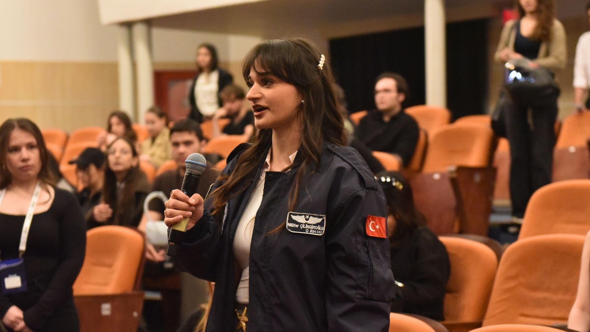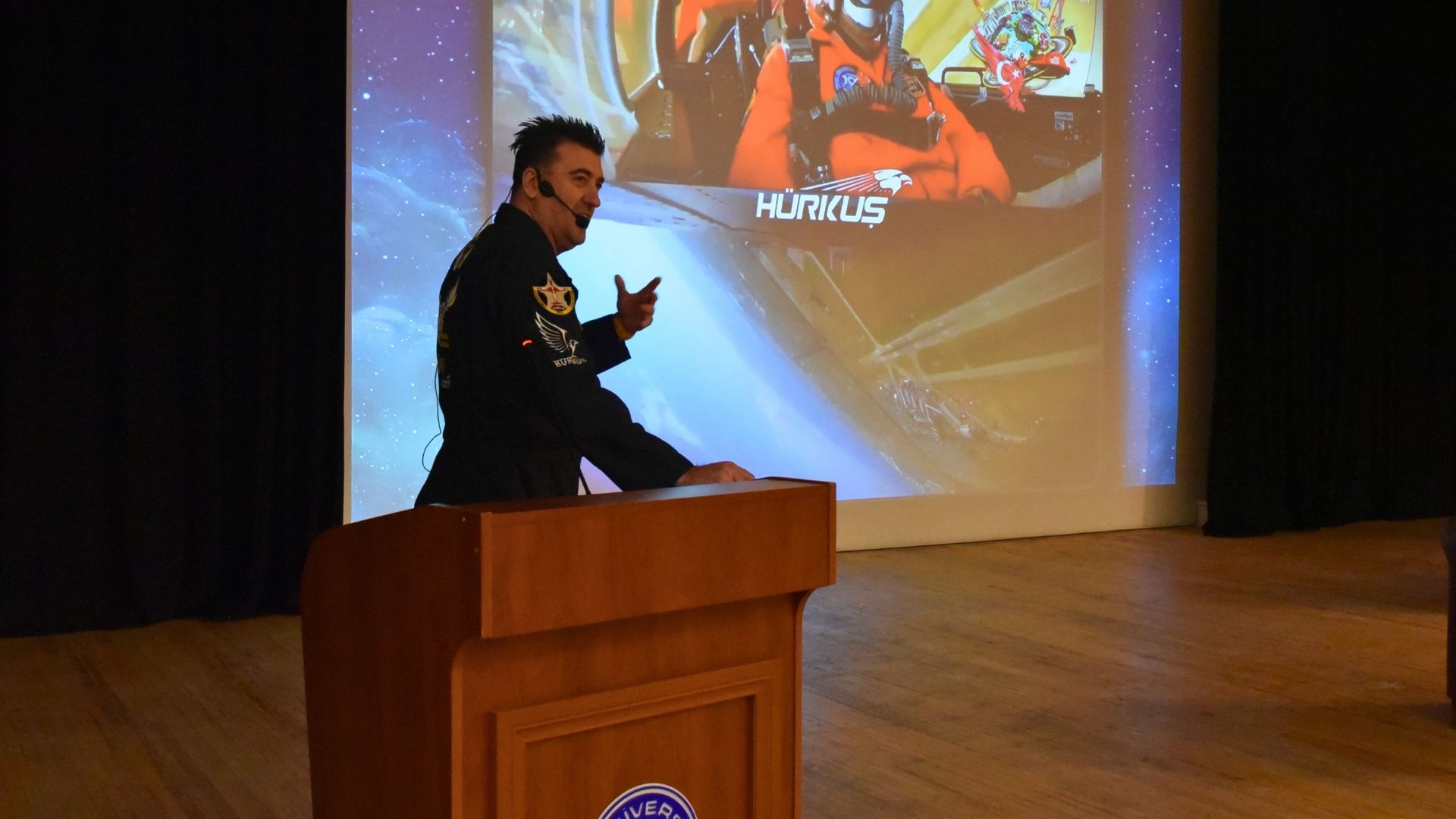 “Hayallerimin Hür Kanatları” başlıklı söyleşisinde gençlere seslenen TUSAŞ Baş Uçuş Test Pilotu Murat Özpala, “Gençler, geleceği inşa etmek istiyorsanız sorumluluk üstlenmeye ve emaneti devralmaya hazır olmalısınız; değer katan bir ülkede var olmanın başka yolu yok. Benim başarılarım, İzmir sokaklarında kurduğum o büyük hayallerle başladı. Şunu unutmayın; hayal kurduğunuz müddetçe bu dünyada varsınız. Aksi takdirde dünyaya bir değer katamaz, sadece yiyip içerek karbon döngüsüne katkıda bulunan bir ‘yük’ haline gelirsiniz. Kariyerimin en kritik döneminde TUSAŞ’ın talebiyle, Türkiye’nin ilk deneysel test pilotu olmak üzere Kanada’daki ITPS’e gittim ve ülkemizin bu alandaki ilk diplomasını aldım. Bu görev, sadece pilotluk değil; havacılık ve uzay mühendisliği altyapısı ile birleşen devasa bir tecrübe gerektiriyor. Şimdi tüm bu birikimimi, gençlere rehber olması amacıyla ‘Hür Kanatlarım’ adlı kitapta topladım. Her şey o ilk hayalle ve Ulu Önder’in ‘İstikbal göklerdedir’ vizyonuyla başladı. Aranızdan mutlaka birileri büyük işler başaracak; yeter ki o ‘bir şeyleri’ yapma azminizi asla kaybetmeyin” dedi.